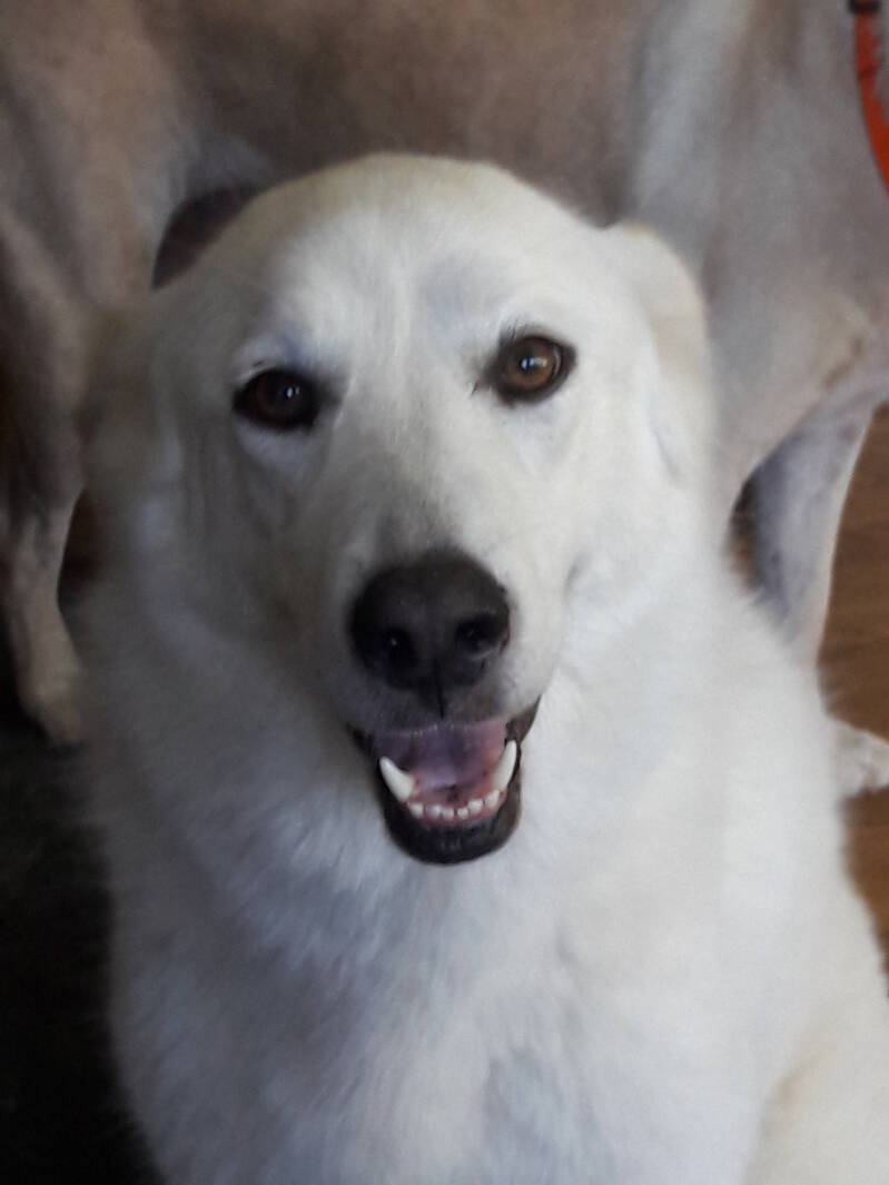 Luna, a Great Pyrines dog given by a friend in November 2018, his neighbors did not wanted her anymore so they gave her to him and he gave her to me.